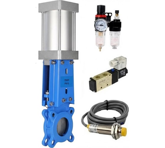Задвижка шиберная DN.ru 304-304-M-1W Ду80 Ру16 односторонняя, пневмоприводом, пневмораспр. 220VAC, индукционные датчики 220VAC, БПВ D040-10498