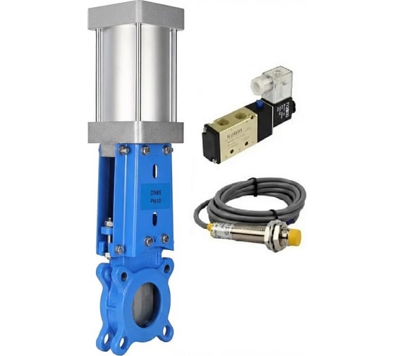 Задвижка шиберная DN.ru 304-304-M-1W Ду80 Ру16 односторонняя, шпиндель выдвижной, пневмоприводом, пневмораспр. 220VAC, индукционные датчики 220VAC D040-10496