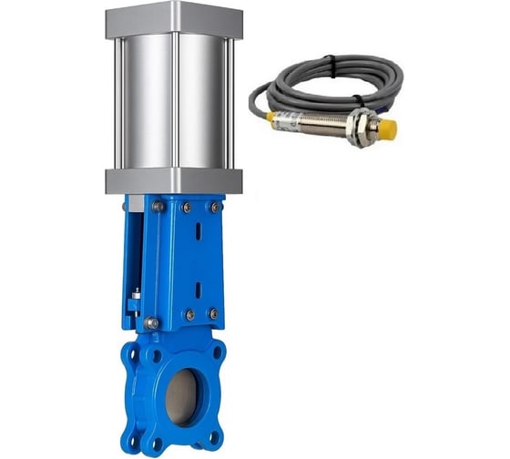 Задвижка шиберная предназначена для установки на трубопроводе в качестве запорного устройства и регулирования потока рабочей среды в системах водоснабжения (кроме систем питьевого водопровода) и химической промышленности. Принцип работы шиберной задвижки заключается в перемещении шибера (ножа) перпендикулярно потоку среды. При полном перекрытии диаметра условного прохода трубопровода происходит остановка потока, при частичном — регулировка. Принцип работы пневмопривода основан на перемещении встроенного поршня за счет сжатого воздуха, который поступает в систему с компрессора или резервуара.Индукционный датчик – это датчик бесконтактного типа, предназначенный для контроля положения объектов из металлов. К другим материалам не чувствителен. Индукционные датчики успешно и широко используются для решения многих задач автоматизации процессов в производстве. Изготавливаются с нормально разомкнутыми и нормально замкнутыми контактами, но есть варианты и с обеими типами контакта одновременно. Работают за счет изменении параметров магнитного поля, создаваемого катушкой индуктивности внутри датчика.