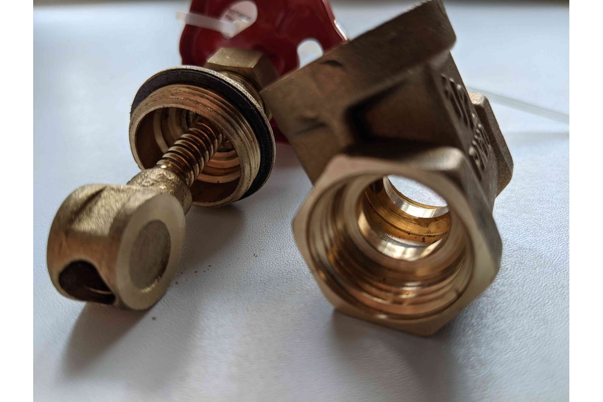 Нет возможности полностью перекрыть воду. Проточка входного и выходного отверстия выполнена очень грубо и видны следы непролива металла. Как следствие рытвины на ответственном участке и подтекание воды(нет возможности полностью перекрыть поток). Из трубы будет капать вода. После смазывания солидолом нужно прилагать усилия, чтоб полностью закрыть. Хотя и вращается ручка легко, но шаг резьбы слишком большой, чтоб можно было плотно запрессовать запирающий клин. Чтоб не осталось зазоров.