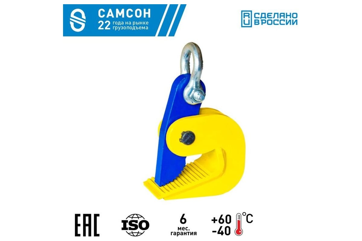 Захват для листа САМСОН ЗГЛ-1,0 скоба 020700040709 применяется для подъема и перемещения листового материала в горизонтальном положении. Оборудование относится к эксцентриковому типу.