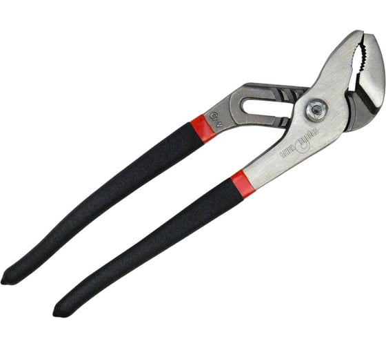 Рабочие части ключа изготовлены из прочной хромованадиевой стали и с помощью специального слоя защищены от коррозии. Инструмент состоит из двух рукояток, соединенных шарниром, и двух губок, одна из которых переставная. Губки имеют зубчатую поверхность для надежного сцепления с трубой. Двухкомпонентная рукоять удобно лежит в руке и не выскальзывает. Максимальное расширение ключа - 40 мм, длина ключа - 250 мм, вес - 450 гр.