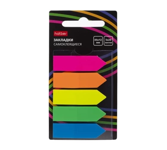 Закладки Hatber NEON Стрелки Самоклеящ. пластик 45х12мм 5 цв. 20л с ев 090299