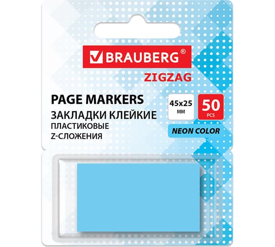 Закладки клейкие BRAUBERG Z-сложения неоновые голубые ZigZag, 45х25 мм, 50 шт, в диспенсере, 116679