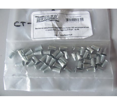 Отзывы о заклепке резьбовой стальной цилиндрической с насечкой (50 шт; М3; стандартный борт) MESSER 211103S-50