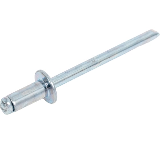 Заклепка выполненная целиком из оцинкованной стали. Применяются заклепки сталь-сталь для крепления изделий средней тяжести. Материал гильзы— оцинкованная сталь, материал стержня— оцинкованная сталь. Установка стальных заклепок происходит по следующему принципу: при протягивании стержня с утолщением на одном конце в виде полусферы сминается тело заклёпки и на обратной стороне скрепляемых поверхностей образуется шляпка.
