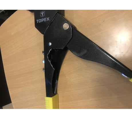 Материал изготовления заклепочника дешевый силумин, который при небольшом усилии Просто отломался.