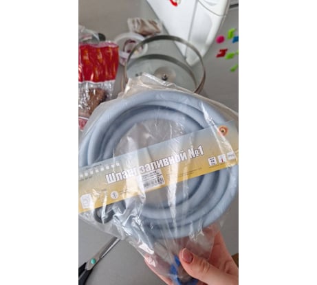 Шланг пришел с дефектом. При получении в упаковке, под стяжкой с прокладками не увидел.(