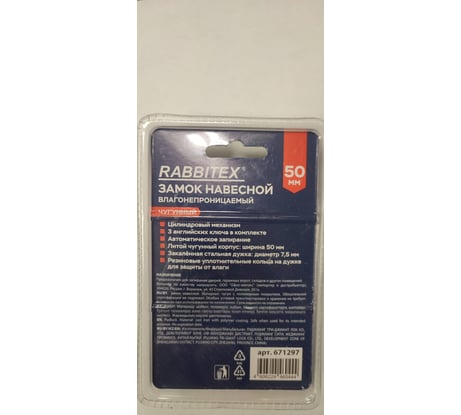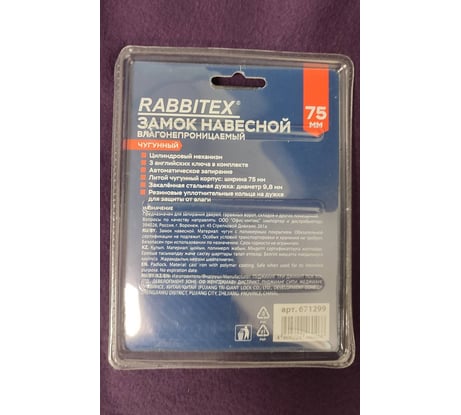 Отзывы о замке навесном чугунном RABBITEX 38мм Влагонепроницаемом, полимерное покрытие, 3 ключа 671296