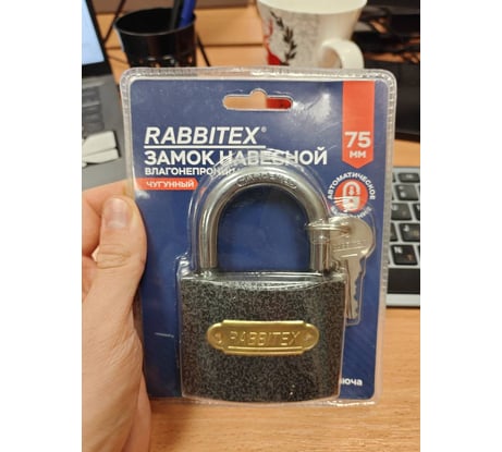 Замок навесной чугунный RABBITEX 50мм Влагонепроницаемый, полимерное покрытие, 3 ключа 671297