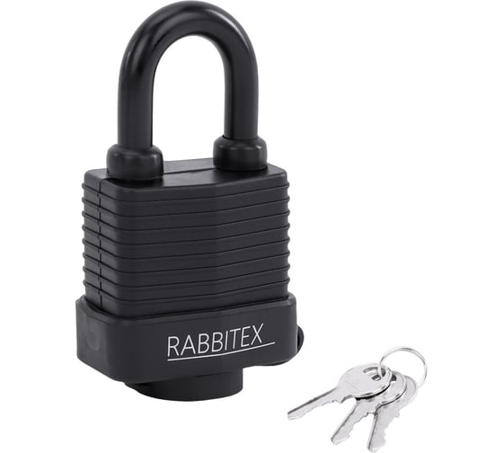 Замок навесной RABBITEX стальной 50мм всепогодный оцинкованный, прорезиненный, 3 ключа 671301