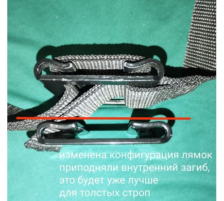 Слегка улучшилась проходимость для толстых строп за счет вывода внутренней части лямки вверх. Как отразится на сцепке стропы, пока непонятно.