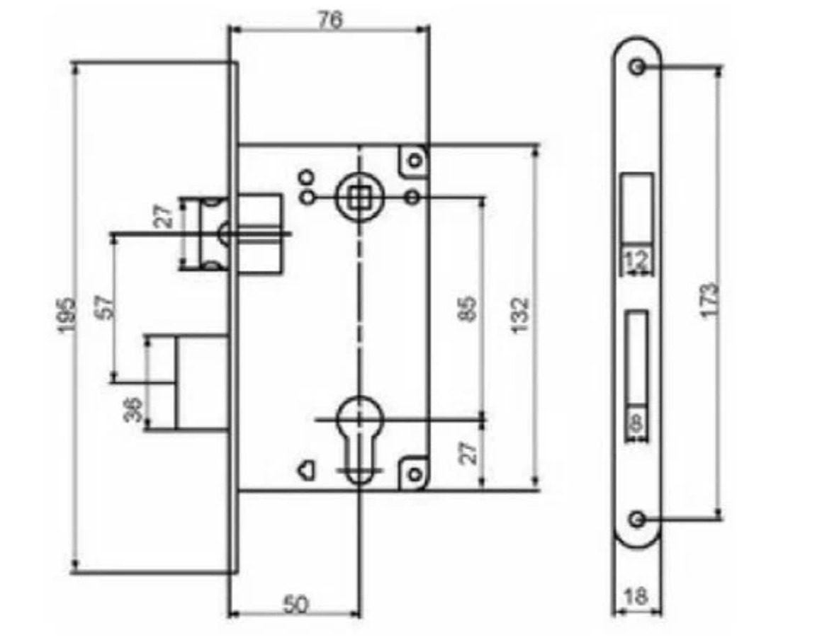 Технические характеристики замка Ренц 1 ригель и защелка, с подшипниками, белый
