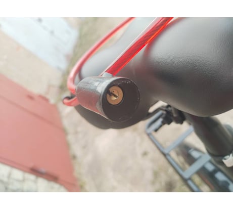 Нормальный замок. Трос солидный. Заказал специально красный, чтобы был заметен на черном фоне.