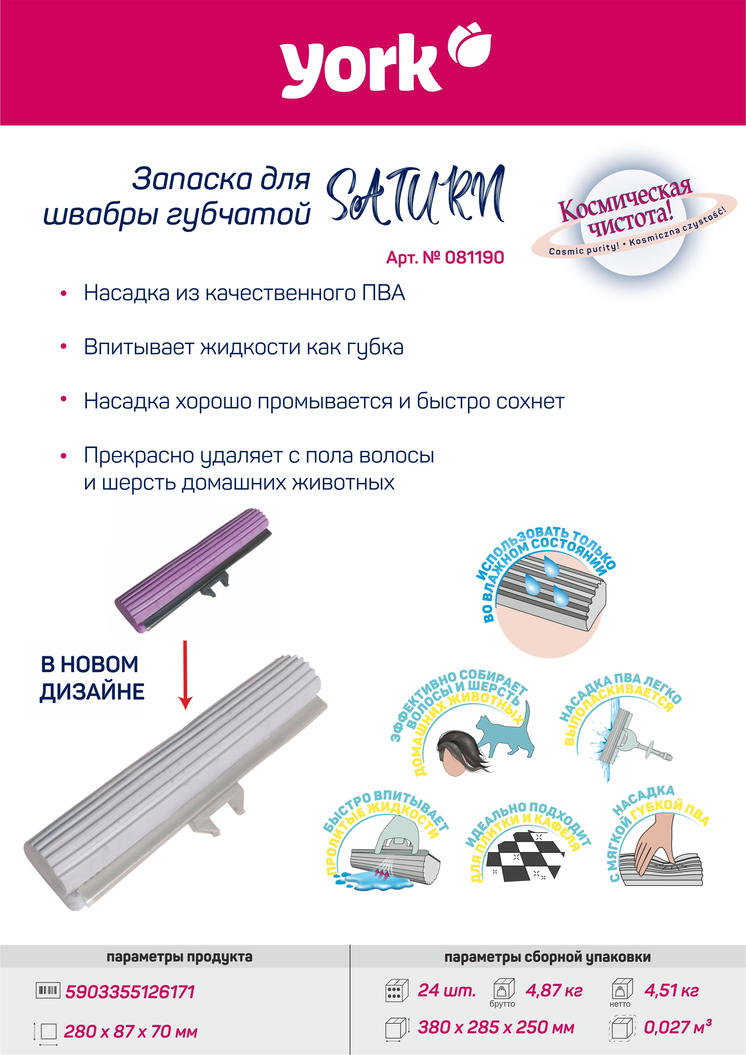 Запаска для швабры YORK Сатурн 081190 предназначена для уборки помещений.