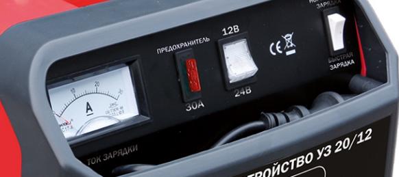 Простое управление На панели управления расположены тумблеры: главный выключатель, переключатель режимов обычной зарядки или BOOST (быстрая), а также встроенный амперметр, который отображает ток зарядки. |