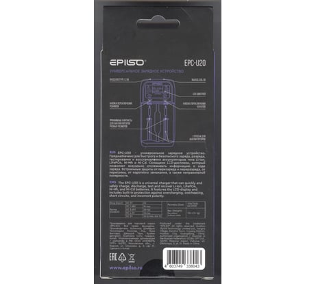 Универсальное зарядное устройство EPC-U20 на 2 канала, предназначенное для работы с аккумуляторами типа Li-Ion, LiFePO4, Ni-Mh и Ni-Cd, позволяющее зарядить, разрядить, протестировать и восстановить их. Поддерживает быструю зарядку с силой тока до 2А и оснащено LCD-дисплеем и звуковым сигналом. Оно работает в автоматическом режиме и не требует контроля во время заряда, автоматически подбирая ток и распознавая тип батареи. Зарядка осуществляется током до 2А.