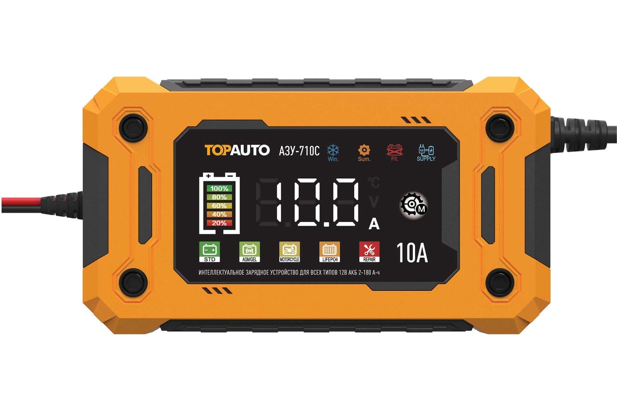 Зарядное устройство интеллектуальное TopAuto АЗУ-710С с режимами десульфатация, хранение, блок питания (для 12В, до 10А, до 180 А-ч) 10A001