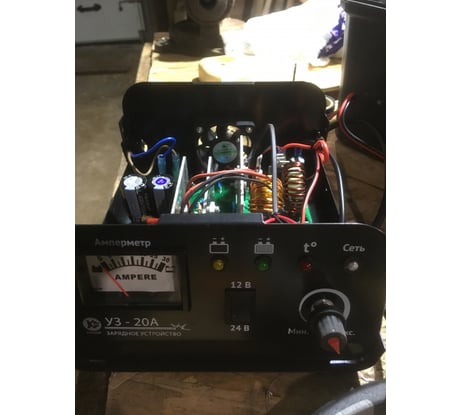 Очень шумный кулер охлаждения. Зажимы (крокодилы) из хлипкого металла, на маленьких клеммах плохо фиксируются. Некорректно работает индикатор "сеть" - включается при подсоединении АККБ, а не шнура питания. Регулятор силы заряда вообще не функционален (крути, не крути, ничего не меняется). Амперметр работает в обратную сторону, вместо показаний силы тока на заряд, показывает отдачу батареи. За сутки 60Ач батарею зарядить не смог. :(