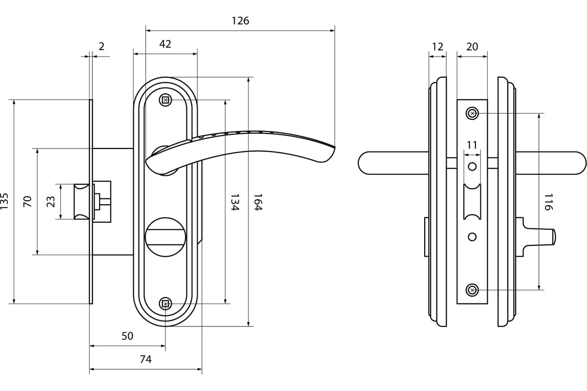 Технические характеристики комплекта дверной фурнитуры БУЛАТ бронза с фиксацией