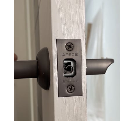 Приобрела для межкомнатных дверей. Выбор пал на эту модель по трём причинам: 1) Это Apecs; 2) Пластиковый язычок защёлки; 3) Наличие вкладыша для ответной планки. И цвет понравился )