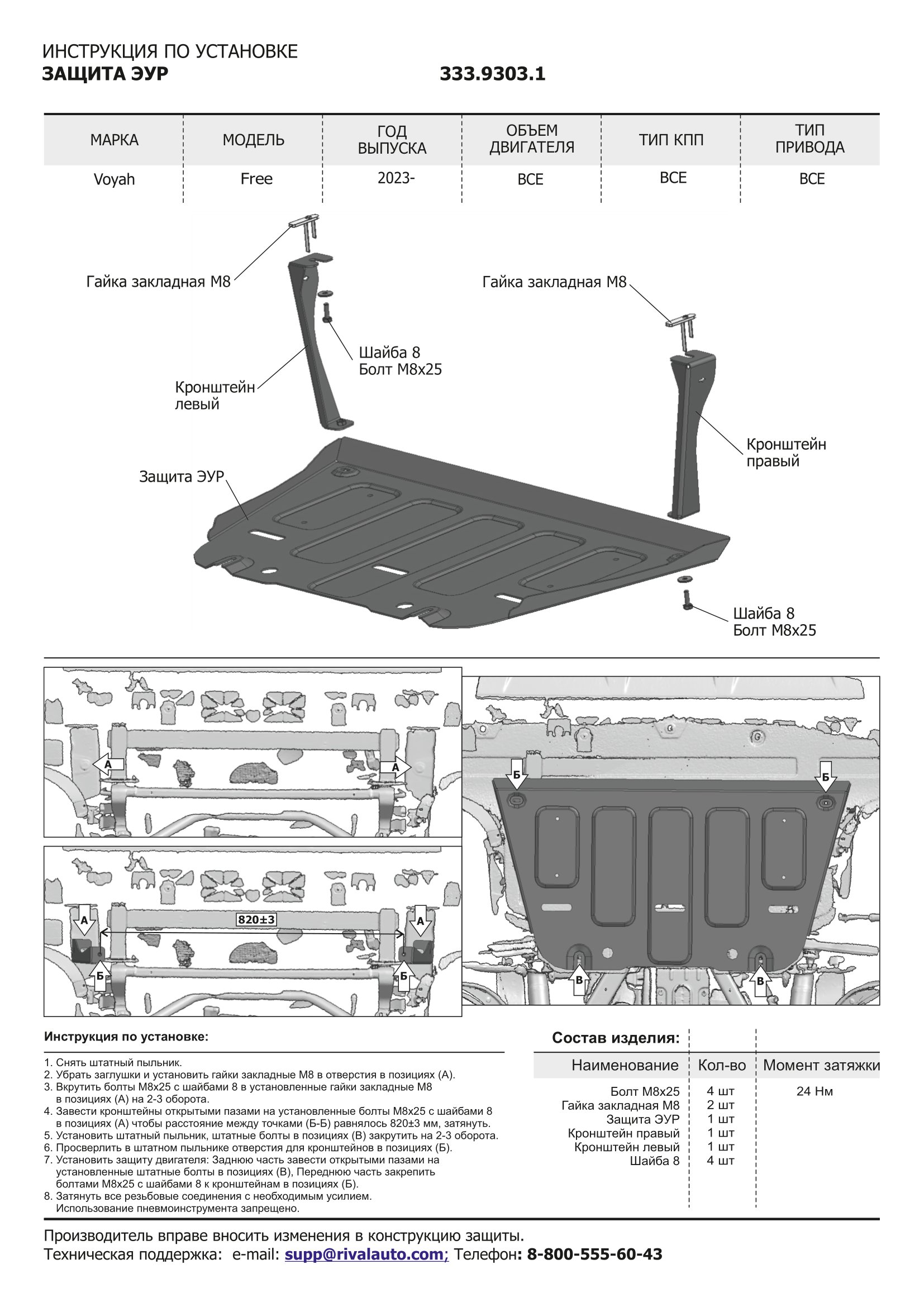 - Крепеж защищен от коррозии специальным цинковым покрытием, что позволяет без усилий провести монтаж/демонтаж изделия во время технического обслуживания автомобиля