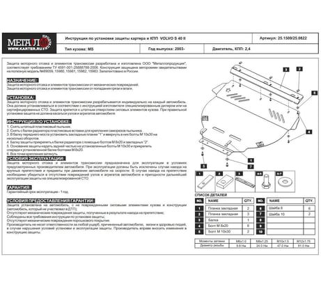 Технические характеристики защиты картера двигателя и кпп sheriff 822