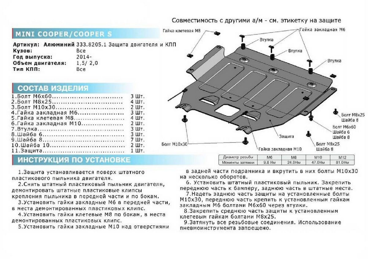 Защита картера и КПП Rival для Mini Clubman II (Cooper, Cooper S)/Clubman II рестайлинг/Hatch III (Cooper, Cooper S) 333.8205.1