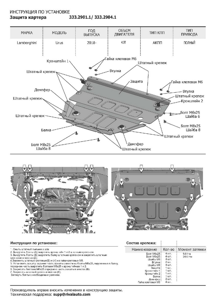 Сопутствующие товары для защиты картера Rival 333.2904.1