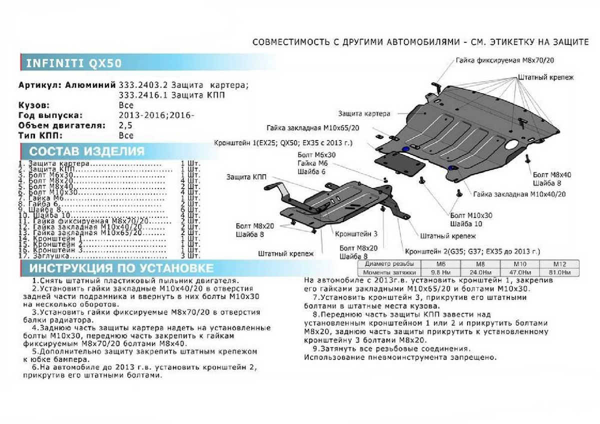 Защита КПП Rival для Infiniti EX 25/35 V - 2.5; 3.5 2007-2013/Infiniti G 35 IV V - 3. 333.2416.1 подходит для Infiniti EX 25/35 (V - 2.5; 3.5) 2007-2013, Infiniti G 35 IV (V - 3.5) 2006-2010, Infiniti G 37 IV рестайлинг (V - 3.7) 2010-2014, Infiniti QX50 I (V - 2.5) 2013-2018.