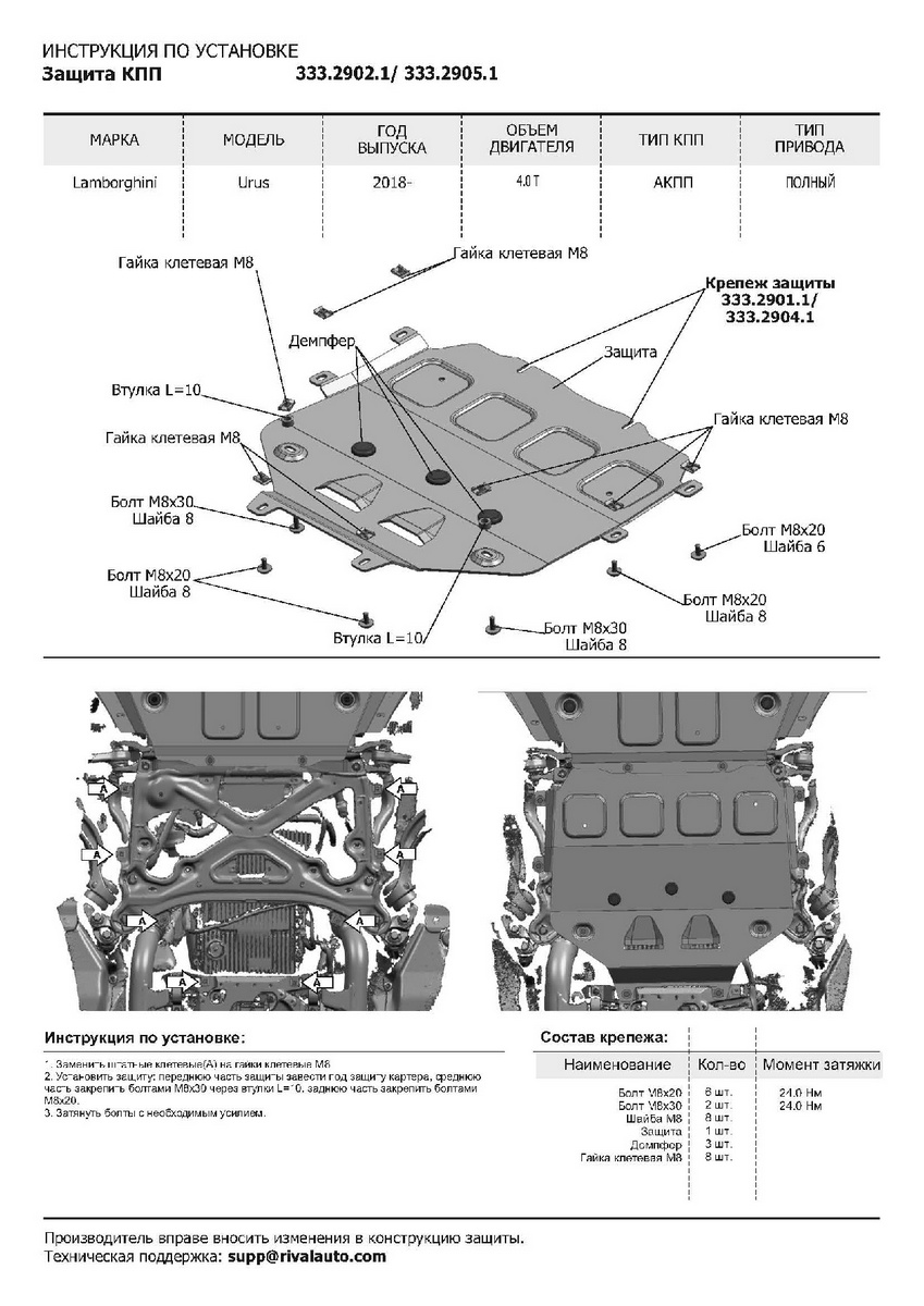 Защита КПП Rival подходит для: Lamborghini Urus (V - 4.0T) 2017-н.в.