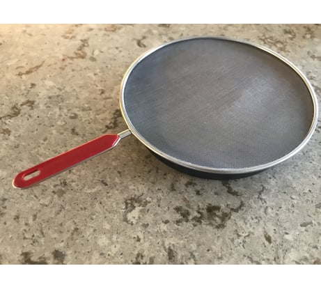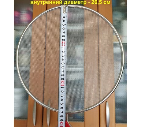 Плоская нержавеющая сетка. Внешний диаметр обода - 28,0 см, внутренний диаметр - 26,5 см.