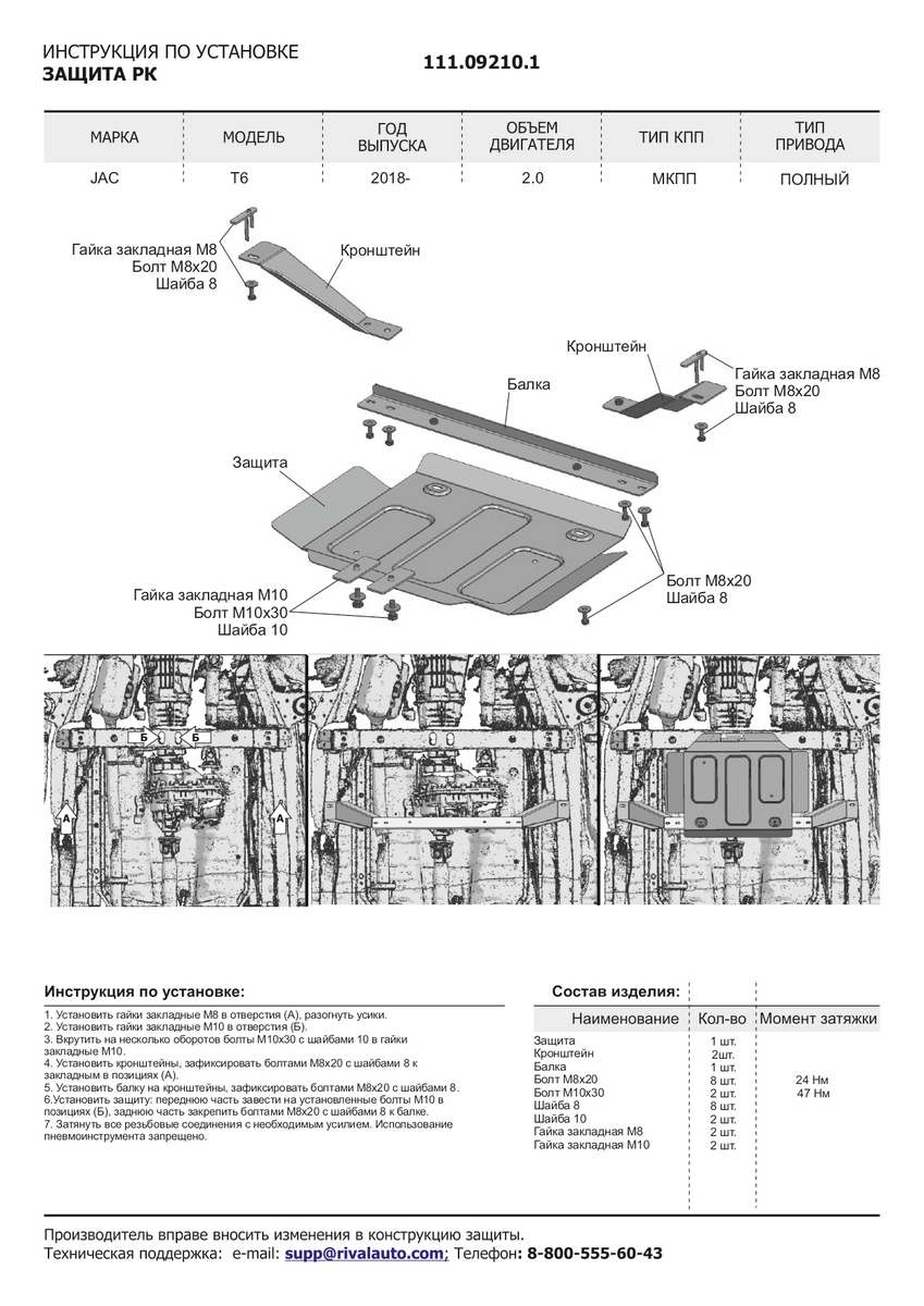Защита РК АвтоБроня JAC T6 2018-н.в./T8 2023-н.в./Sollers ST6 2023-н.в., сталь 1.8 мм 111.09210.1