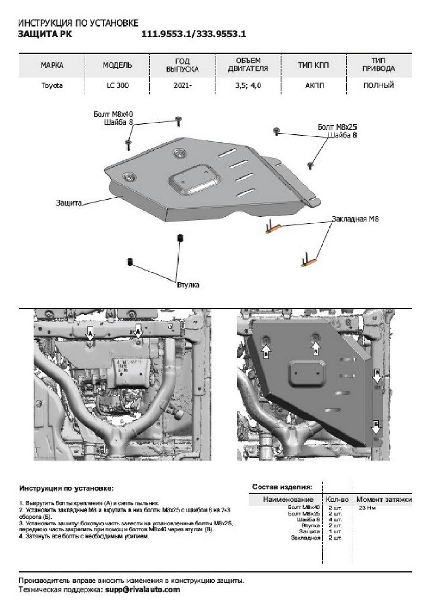 - Защита РК Rival для Toyota Land Cruiser 300 2021-н.в., сталь 1.8 мм, штампованная 111.9553.1 спроектирована с учетом особенностей автомобиля, что делает установку удобной.