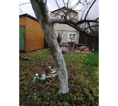 Купили эту краску и покрасили стволы деревьев под зиму, осенью. Краска наносится легко, консистенция удобная для покраски - не льется, но и не тянется за кистью. Хорошо прокрасила все шероховатости коры. Осенние дожди не смыли краску со стволов, и под снегом краска не исчезла. Посмотрим, может, и весенняя обработка не потребуется