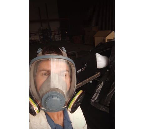 Линза не затирается от пыли и стойкая к растворителям (но учитывайте, что лучше использовать все-таки сменные пленки!). И спец покрытие не на 100%, а на основную часть линзы визора. Силикон, резинки, вообще все детали надежные, есть сменные части всегда в наличии. Хорошо сидит на голове, значительно лучше обзор в этой маске, чем в других полнолицевых (видно даже ноги, что помогает не споткнуться, когда передвигаешься).