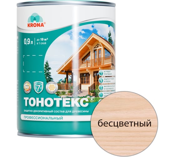 Защитно-декоративный состав для дерева KRONA Тонотекс (бесцветный; 0,9 л) 66330703