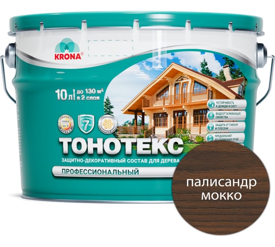 Защитно-декоративный состав для дерева KRONA Тонотекс палисандр-мокко, 10 л 66335043