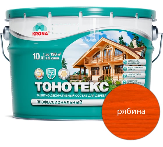 Защитно-декоративный состав для дерева KRONA Тонотекс (рябина яркая; 10 л) 66331601