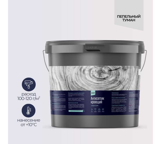 Защитный антисептик кроющий для древесины Бор AQUA ПЕПЕЛЬНЫЙ ТУМАН, ведро 10,7 кг 4690417144808