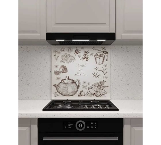 Защитный экран Normand 600х500х4 мм, рис. 20, из закаленного стекла на кухонный фартук для плиты от брызг с фотопечатью 134-276