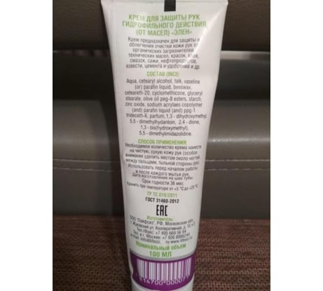 Отзывы о защитном гидрофильном креме от масел, красок, смазок, извести, цемента ЭЛЕН 100 мл 605185