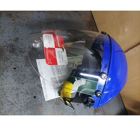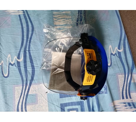 Крепкое и прочное защитное стекло. Хотя, это наверняка пластик. Регулировка по голове очень хорошая. Щиток закрывает все лицо и даже ниже подбородка. Брал для работы с опрыскивателем в саду, но наверняка буду использовать и при работе с УШМ.