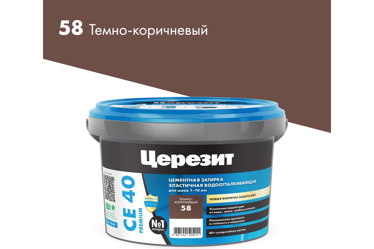 ЗАТИРКА Церезит СЕ 40 PREMIUM цвет №58 ТЁМНО-КОРИЧНЕВЫЙ для швов 1-10 мм ВЕДРО 2 кг 1046233