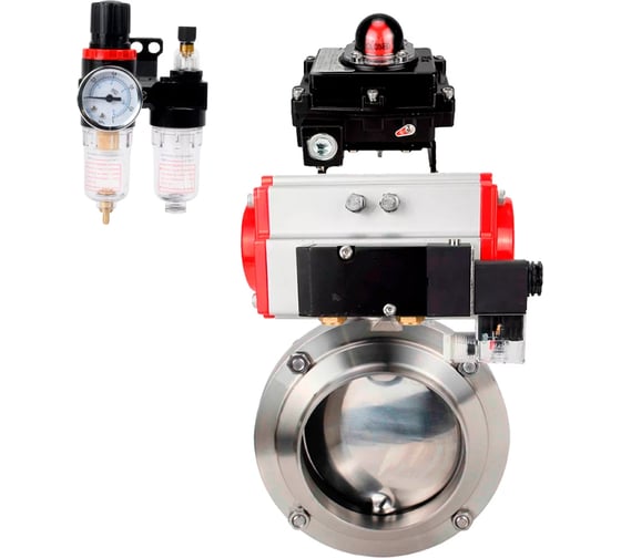 Затвор дисковый поворотный предназначен для использования в качестве запорной или регулирующей арматуры для управления потоками в системах теплоснабжения, водоснабжения, в технологических процессах пищевой, химической, нефтегазовой, целлюлозно-бумажной и других отраслях промышленности. Принцип работы: Затворы открываются и закрываются путем поворота диска на 90°. Открытие производится поворотом рукоятки против часовой стрелки, закрытие - по часовой стрелке. Приводы пневматические DN.ru поворотные двойного действия DA-XXX и приводы пневматические поворотные с возвратной пружиной SA-XXX предназначены для автоматизации процесса управления промышленной арматурой при максимальном значении крутящего момента до 2128 Нм. Пневмораспределители используются для управления в пневмосистемах, имеющих стыковочную поверхность NAMUR, для установки распределителей через сквозные отверстия в корпусе. Блок концевых выключателей – это электротехническое устройство, предназначенное для размыкания и замыкания рабочей цепи и для визуализации положений запорного органа трубопроводной арматуры. Блок подготовки воздуха предназначен для очистки сжатого воздуха от капельной влаги и твердых частиц, удаления конденсата, автоматического поддержания величины давления на заданном уровне, подвода смазочного материала из резервуара в поток сжатого воздуха к элементам пневмосистемы. Товар может отличаться от представленного на фото, при выборе ориентируйтесь на технические характеристики.