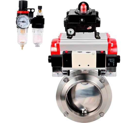 Затвор DN.ru дисковый 304-304-Sil Ду100 Ру10 пищ.нерж.сталь,пн.привод,пн.распр,БКВ,БПВ D050-76448