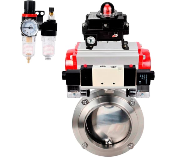 Затвор дисковый DN.ru 304-304-Sil Ду50 Ру10 пищевая нержавеющая сталь, пневмопривод, пн.распр, БКВ, БПВ D050-76391