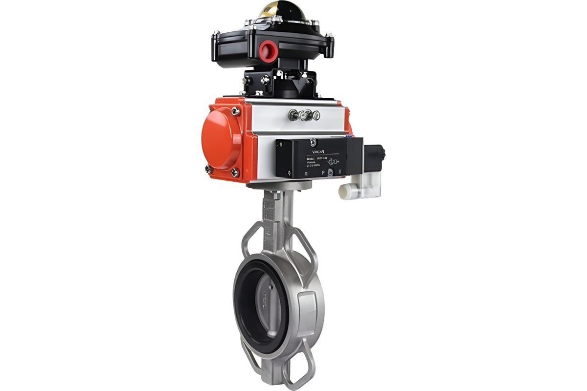 Затвор дисковый поворотный DN.ru 316L-316L-EPDM с пневмоприводом SA-210, пневмораспределителем PND1-S2EM-52-2-T10-220VAC, БКВ LSB-410-02ExM12-250.