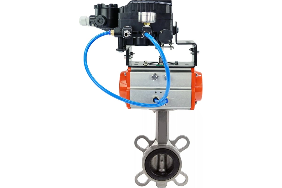 Затвор дисковый поворотный DN.ru 316L-316L-EPDM с пневмоприводом DA-083, поворотным позиционером EPRP1-NU-Fb-08.