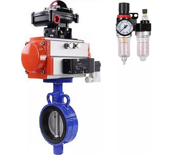 Затвор DN.ru AL-316L-EPDM Ду32 Ру16 с пневмоприводом, пневмораспределителем, БКВ, БПВ D050-19493
